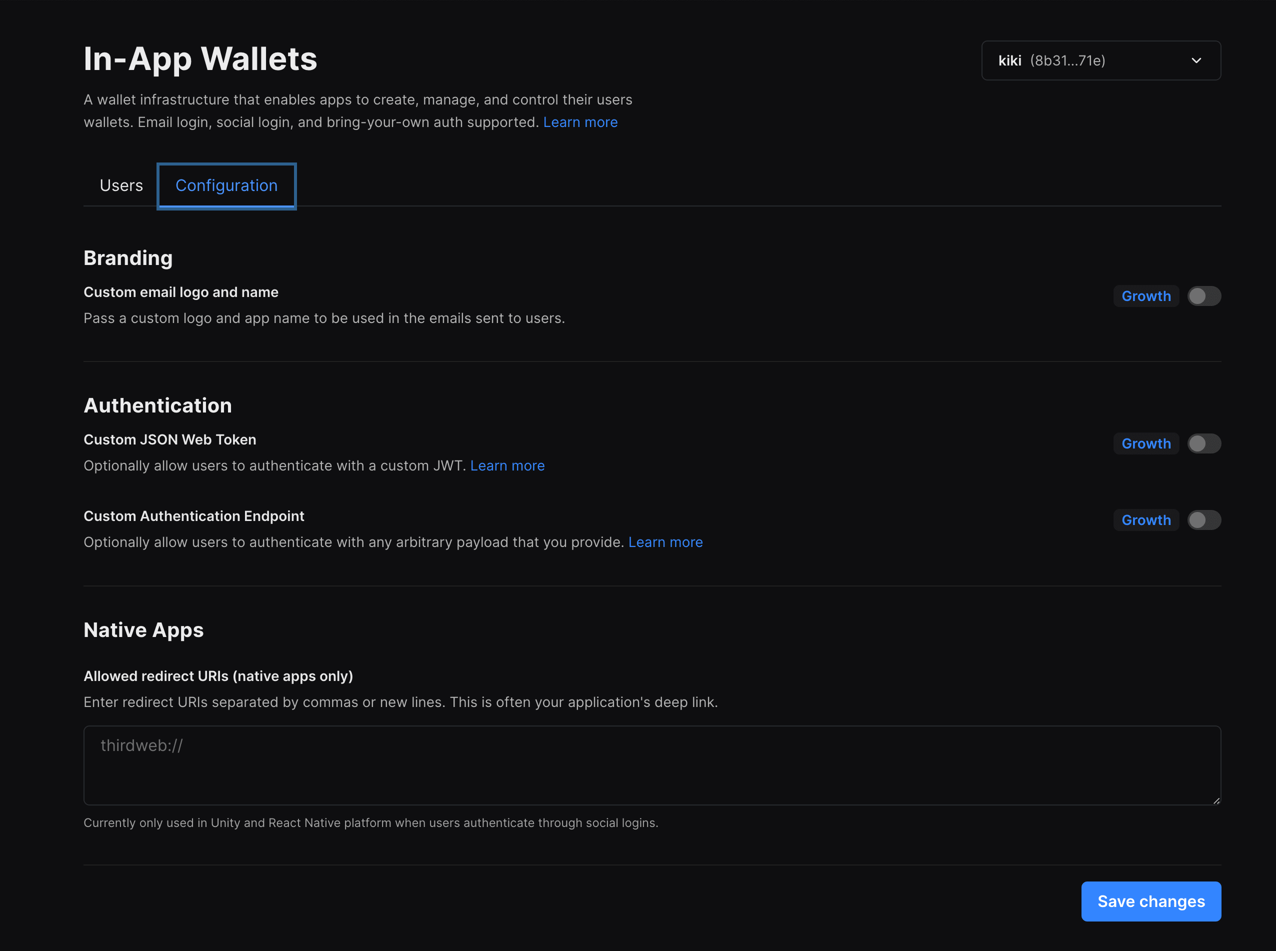 To use generic auth, enable the second option in the configuration tab of the in-app wallet dashboard