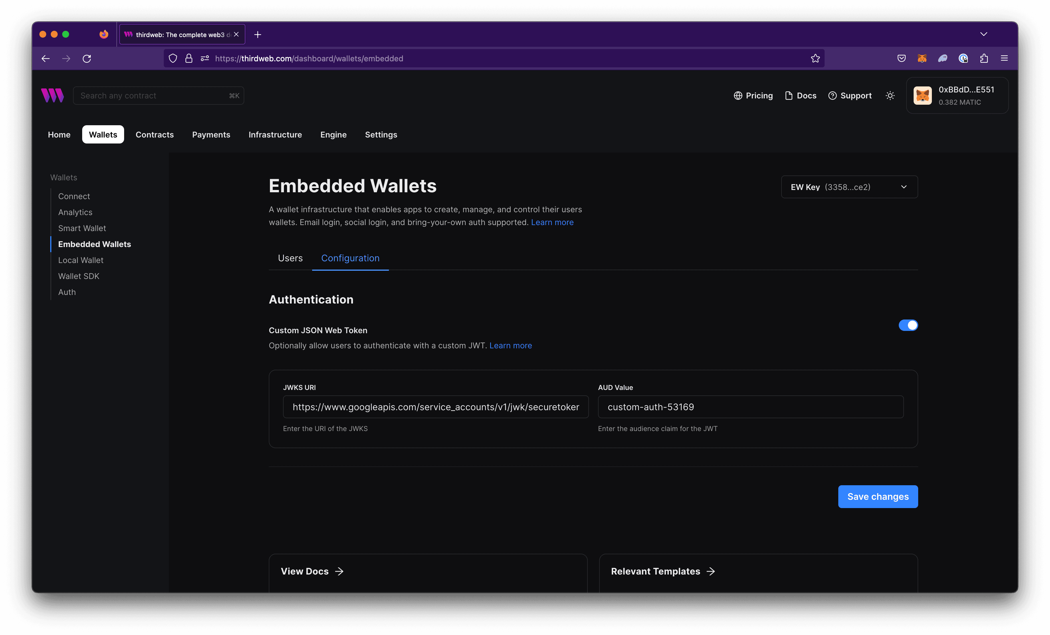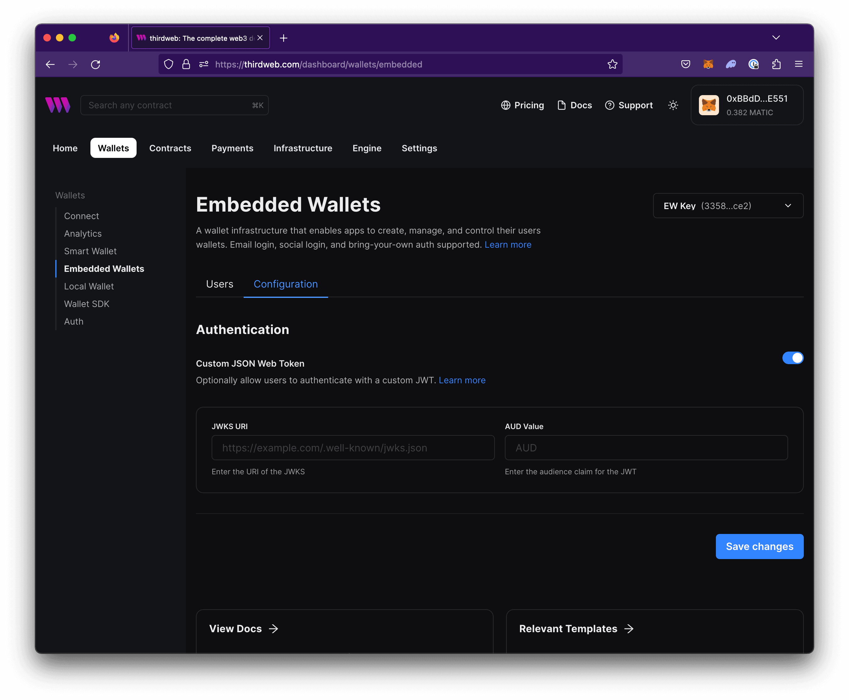 event. You can add this code in your App.tsx file as well:Pass the JWT to the In-App Wallet config in your